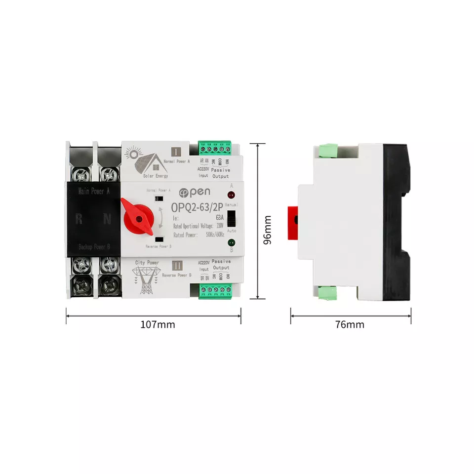 Din Rail Dual Power Automatic Transfer Selector 2 Pole